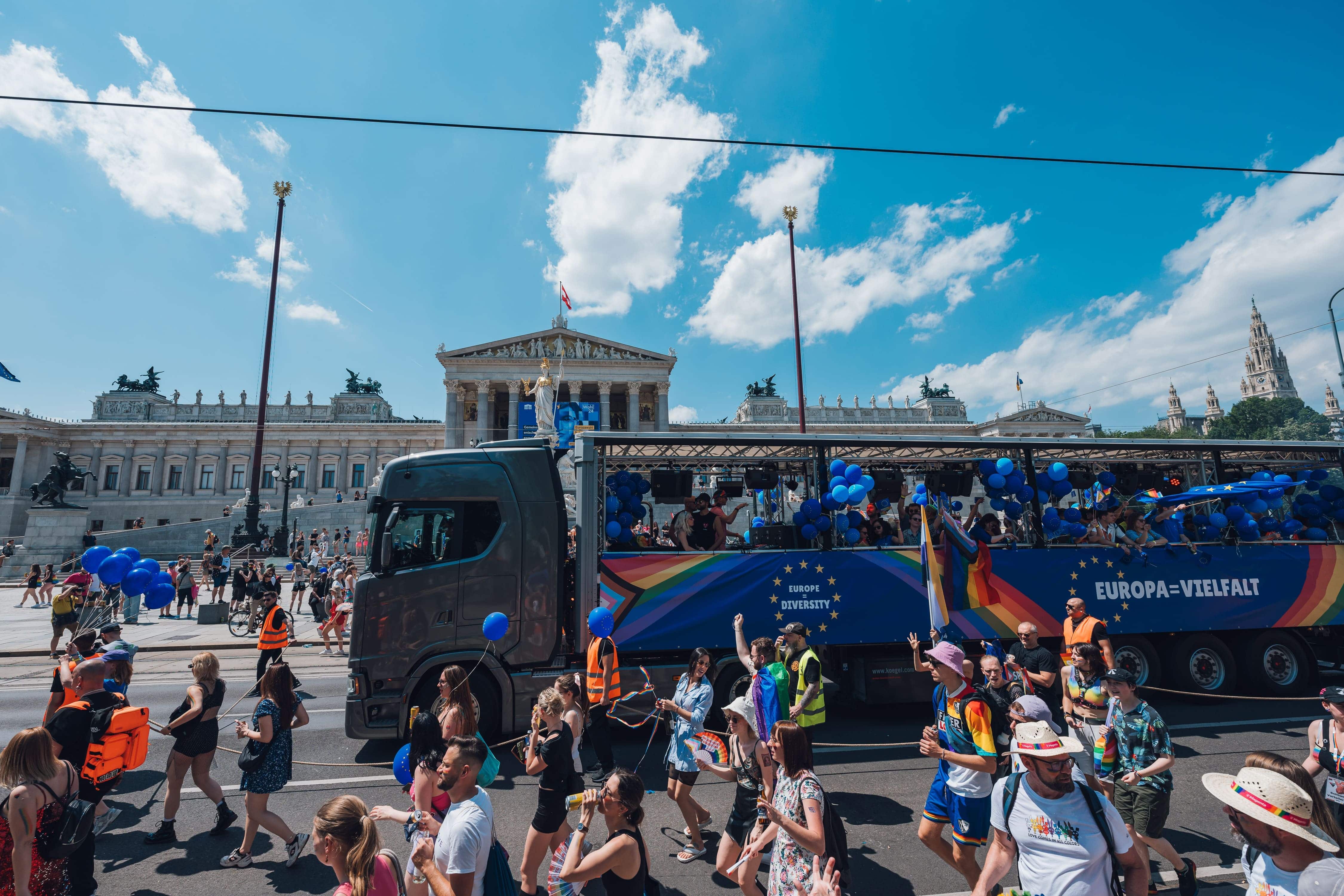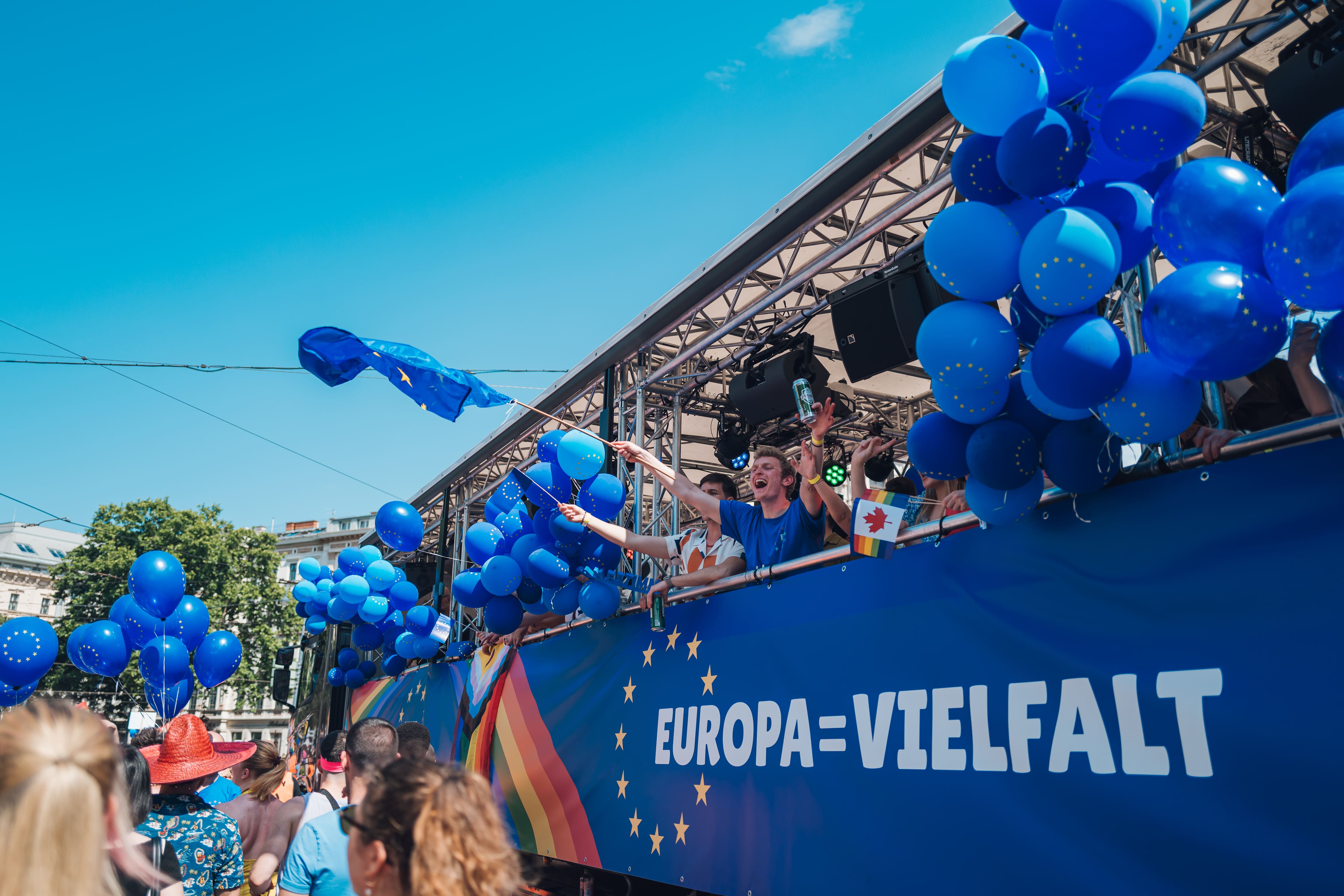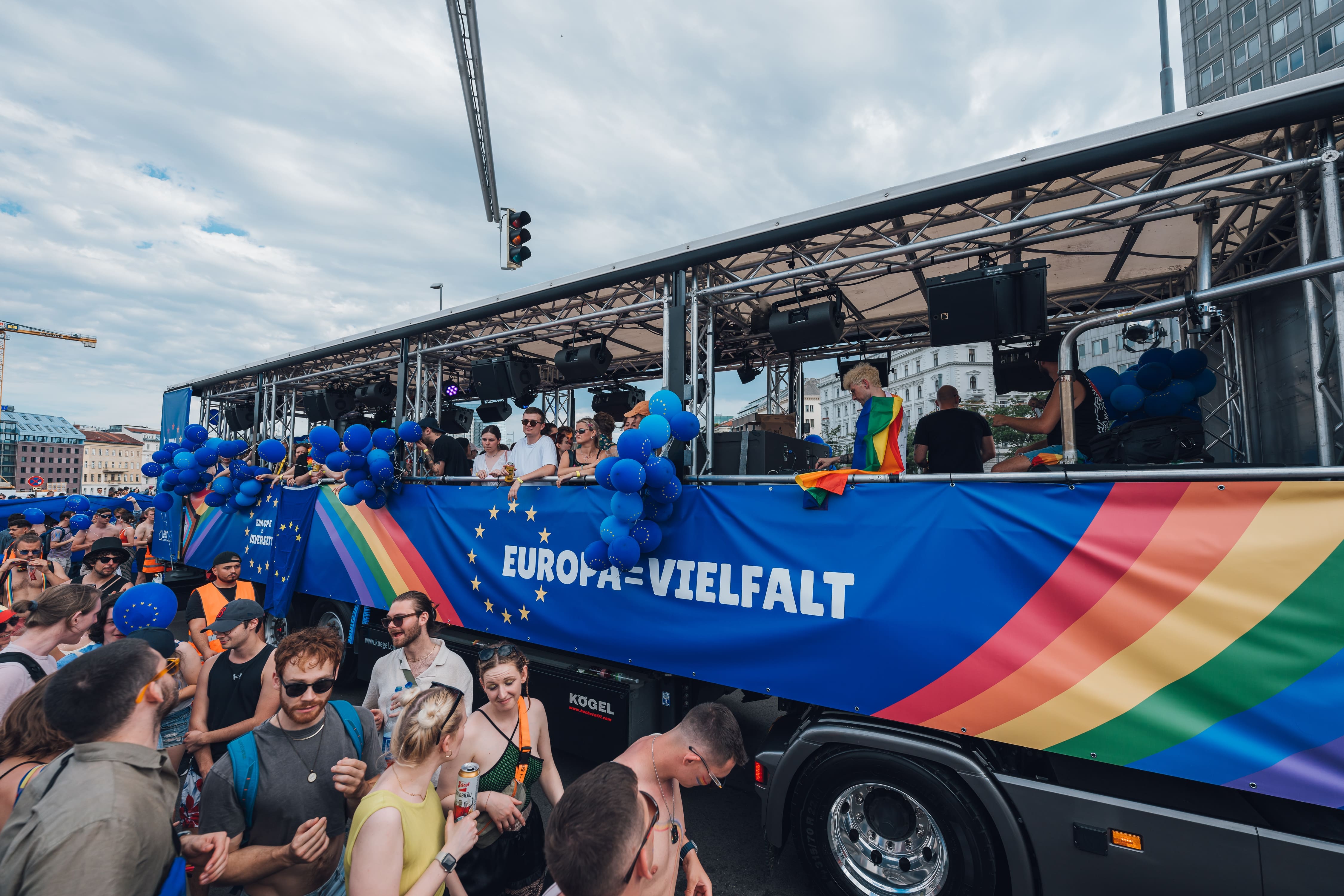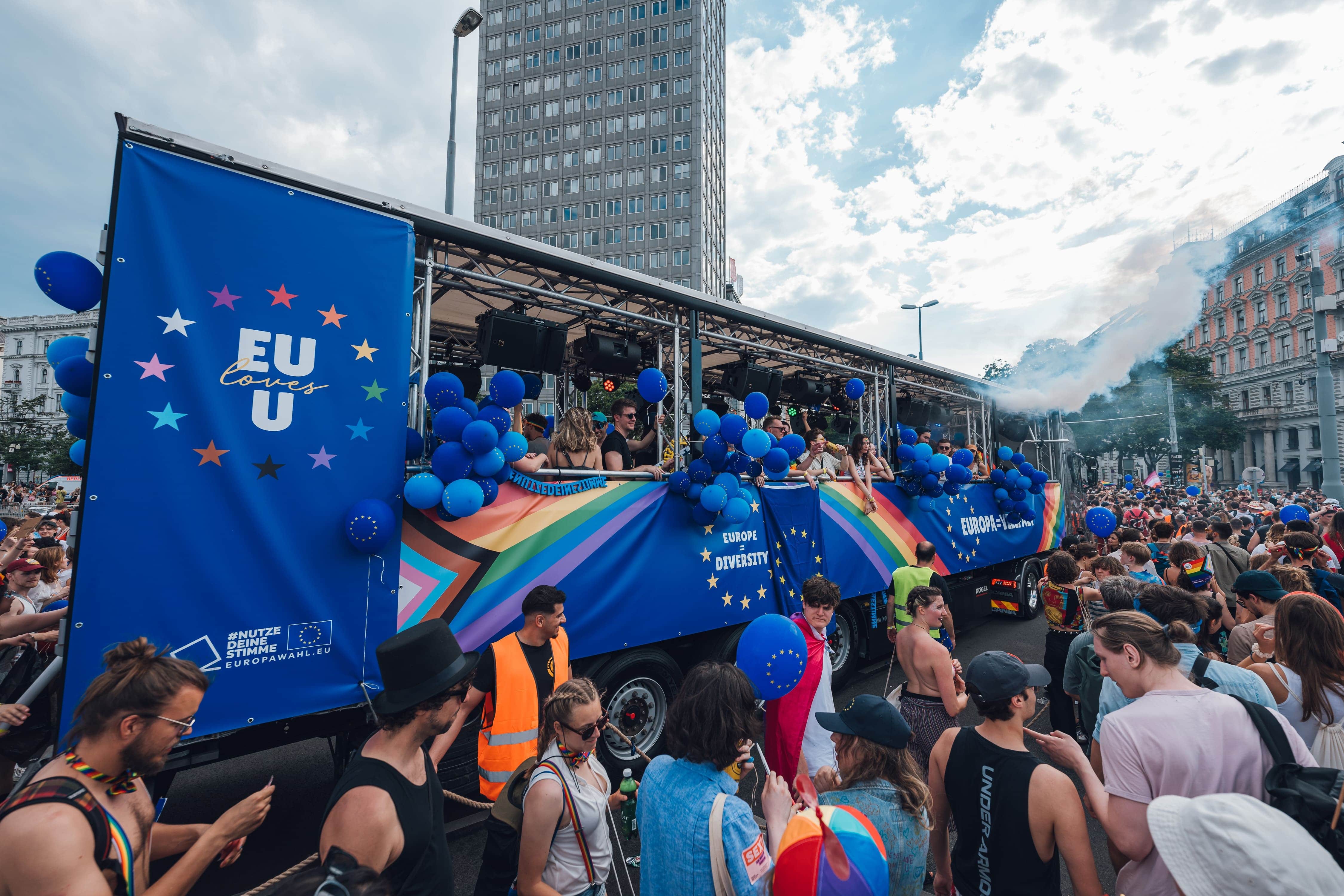 Am 8. Juni 2024 hat die Europäische Kommission – Vertretung Österreich gemeinsam mit ihren Institutionen und dem diplomatischen Corps ein sichtbares Zeichen für Gleichberechtigung und Vielfalt gesetzt. Im Rahmen der 28. Regenbogenparade in Wien war der EU Pride Truck zentraler Bestandteil der größten Demonstration der Stadt mit rund 300.000 Teilnehmenden und Besuchenden |