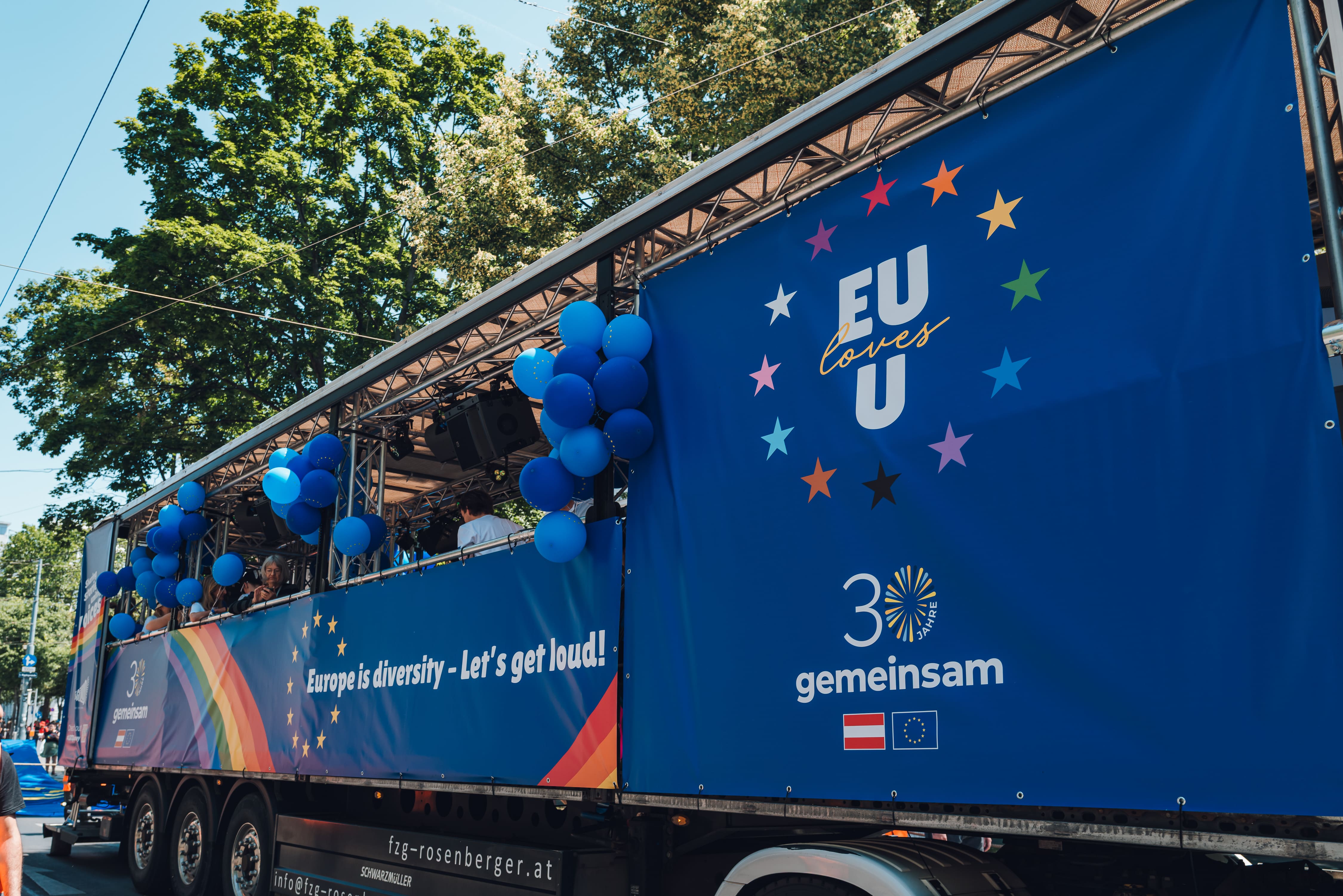 TEAM Europe @ Pride 2025: Laut. Sichtbar. Vereint.Am 14. Juni 2025 setzte TEAM Europe ein kraftvolles Zeichen für Gleichberechtigung und Vielfalt bei der Regenbogenparade in Wien – gemeinsam mit über 300.000 Teilnehmenden auf der Wiener Ringstraße. Der farbenfroh gebrandete Truck wurde zum pulsierenden Treffpunkt mitten im Geschehen und transportierte klare Botschaften für LGBTIQ+-Rechte in ganz Europa. Mit Musik, Goodies und energiegeladener Stimmung wurde der Pride nicht nur gefeiert, sondern auch klar positioniert. |